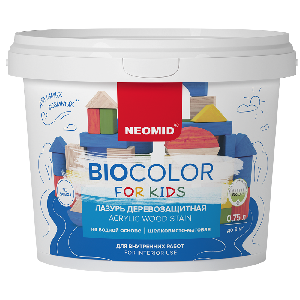 Лессирующий цветной состав на водной основе для эффективной защиты и декоративной отделки деревянных изделий и поверхностей из древесины в спальнях, игровых комнатах и других помещениях.
